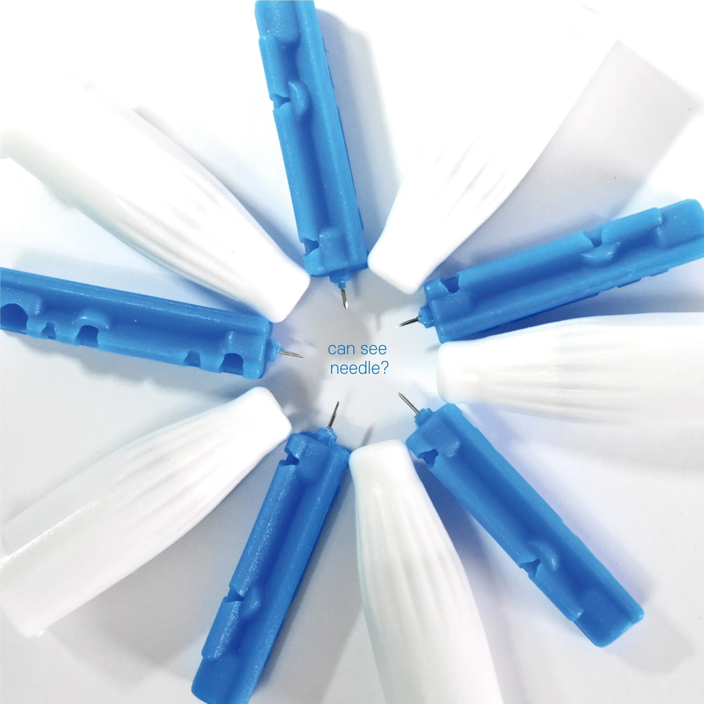 lancet needle that is not exposed reduces visual pain and the double spring mechanism patent technology helps user to lance oneself painlessly.